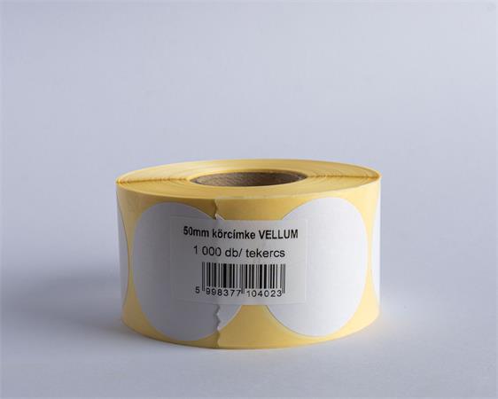 Etikety, vellum papier, 50 mm kruh, 1000 etikiet/kotúč, biele