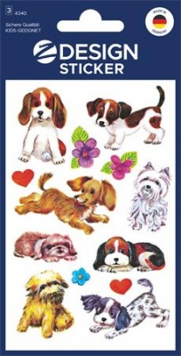 Nálepky, papier, 3 hárky, 76x120 mm, AVERY ZWECKFORM, "Z-Design No.4340", šteniatka