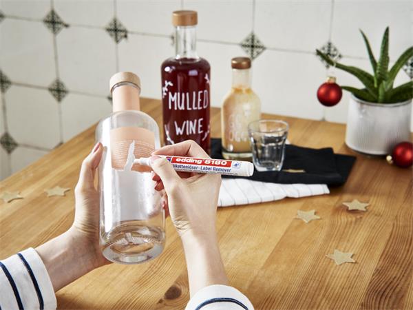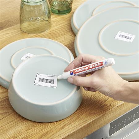 Popisovač na odstraňovanie etikiet na úplné a jednoduché odstránenie väčšiny papierových etikiet a ich zvyškov lepidla z čelného skla, podrážok topánok, skla a porcelánu atď. -hrúbka čiary: 4 mm -zrezaný hrot -bezfarebný jemný olej -jemná vôňa -obsahuje prírodné zložky -možno použiť na zvislé povrchy, bez kvapkania.