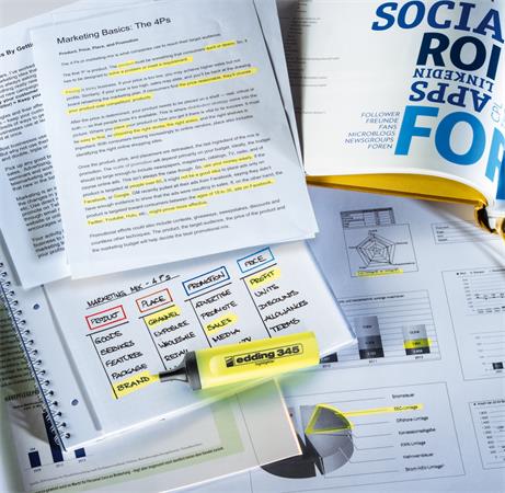 Zvýrazňovač naplnený fluorescenčným atramentom. -zvýraznený text zostáva dobre čitateľný aj po kopírovaní -zrezaný hrot -farba písma: červená -hrúbka písma: 2–5 mm