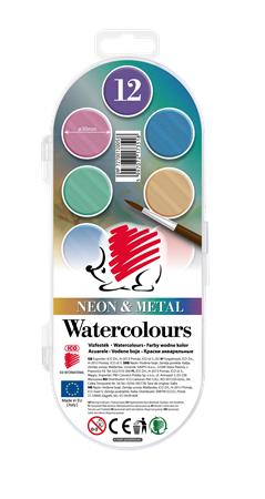 Vodové farby, 12-kusové, 30 mm, ICO "Süni", neónové a kovové farby