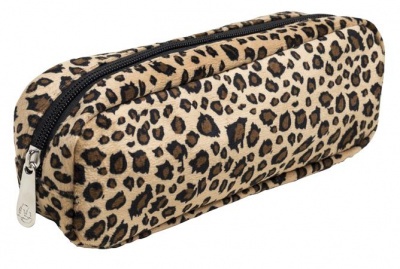 Módny peračník zo syntetickej kožušiny s leopardím vzorom.