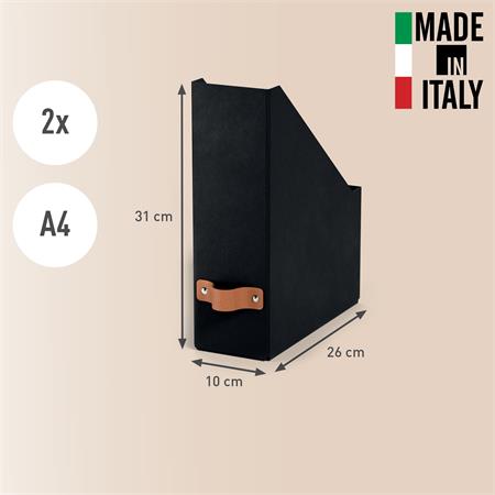 Súprava dvoch stojanov na časopisy zo 100% recyklovaného kartónu s certifikátom FSC s moderným a čistým dizajnom, ktorý doplní vašu domácnosť aj kanceláriu.