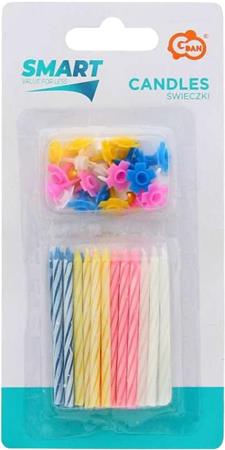 Narodeninové sviečky, s podstavcom, 24 ks